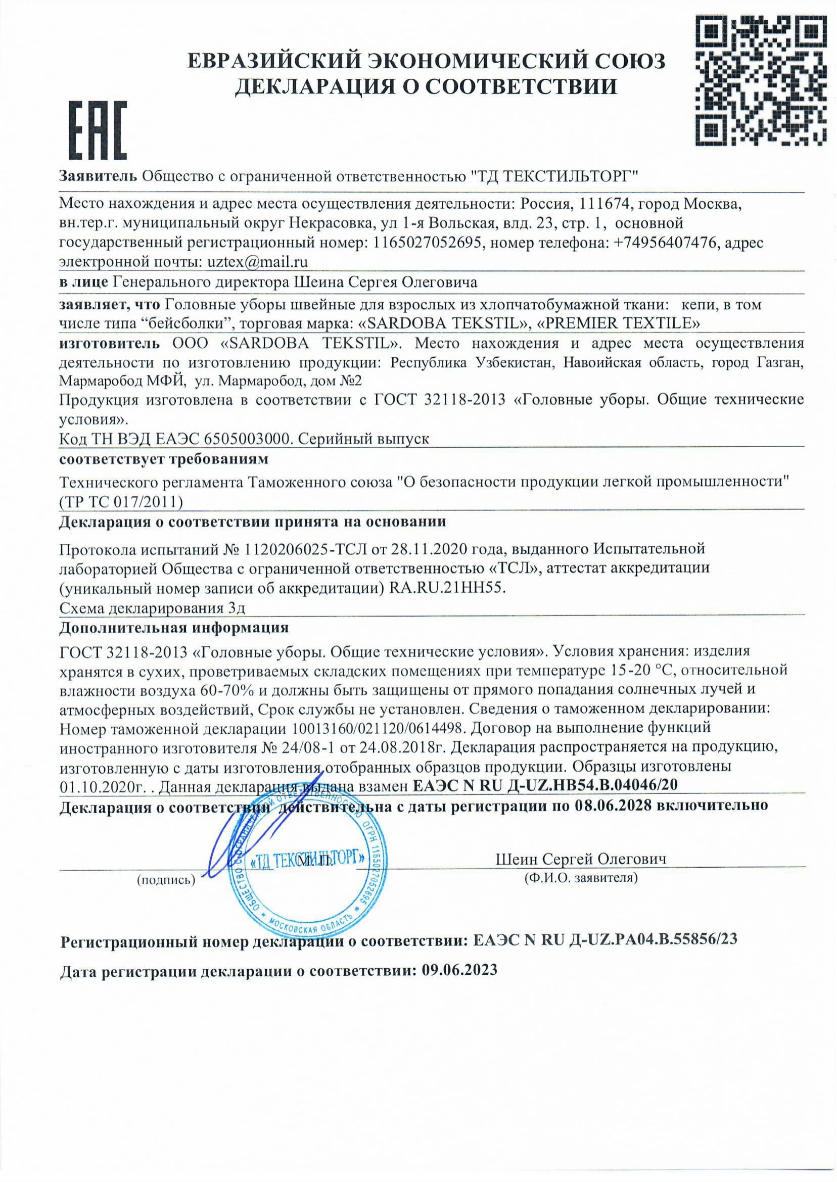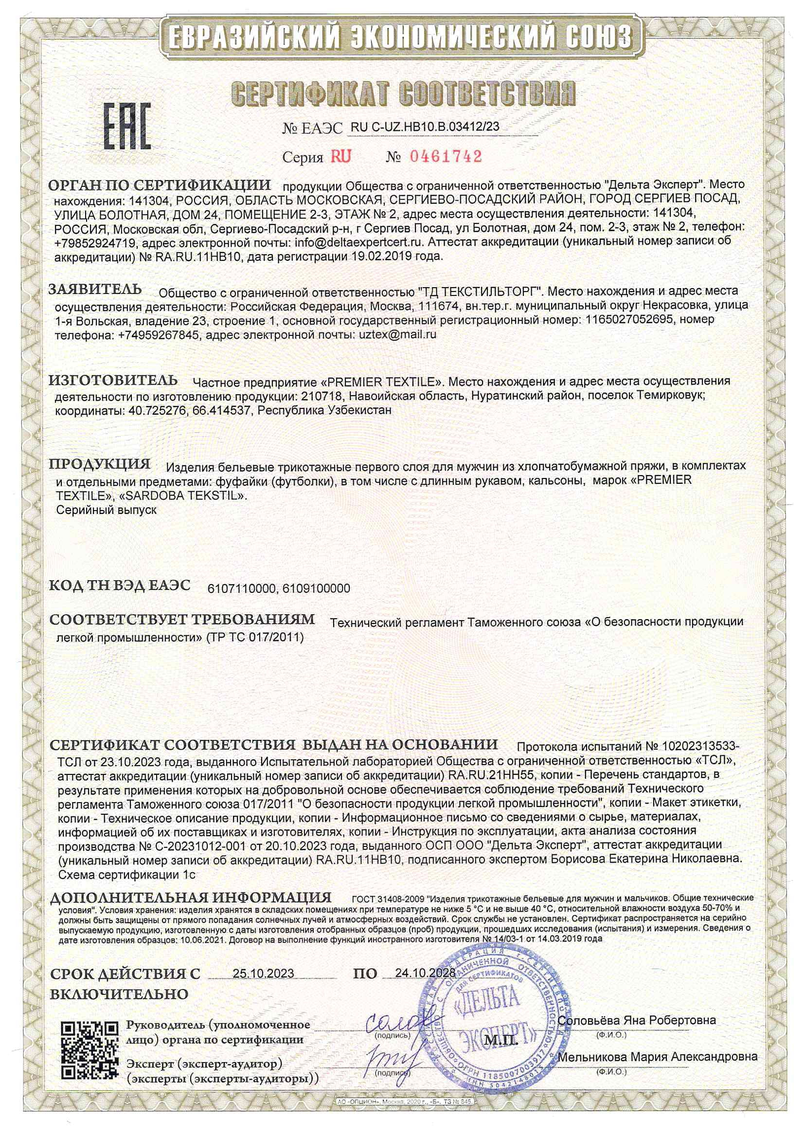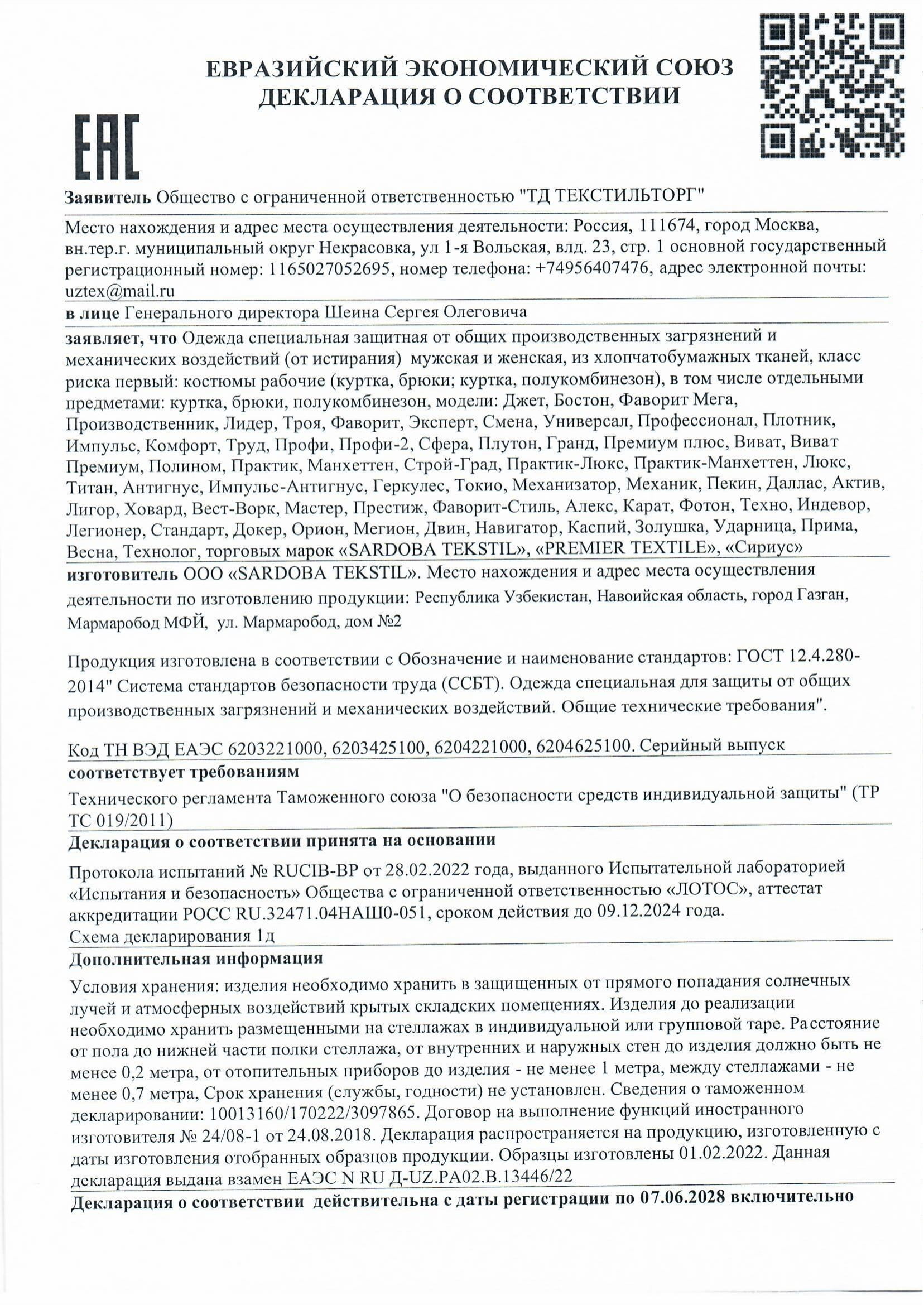Вся продукция компании «ТекстильТорг» проходит обязательную сертификацию